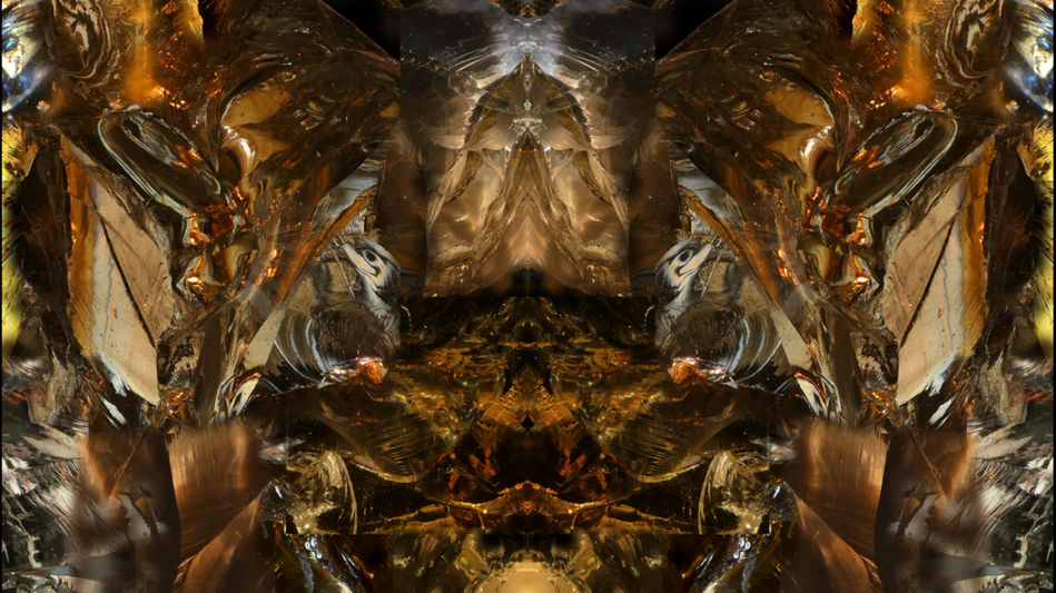 Die Bilder dieser Ausstellung sind ausnahmslos gespiegelte Fotos von Bruchglas und seinen Stukturen, in vielen Fällen beleuchtet von Spektralfarben, welche wiederum durch die Brechung von Lichtstrahlen in Prismengläsern erzeugt wurden.